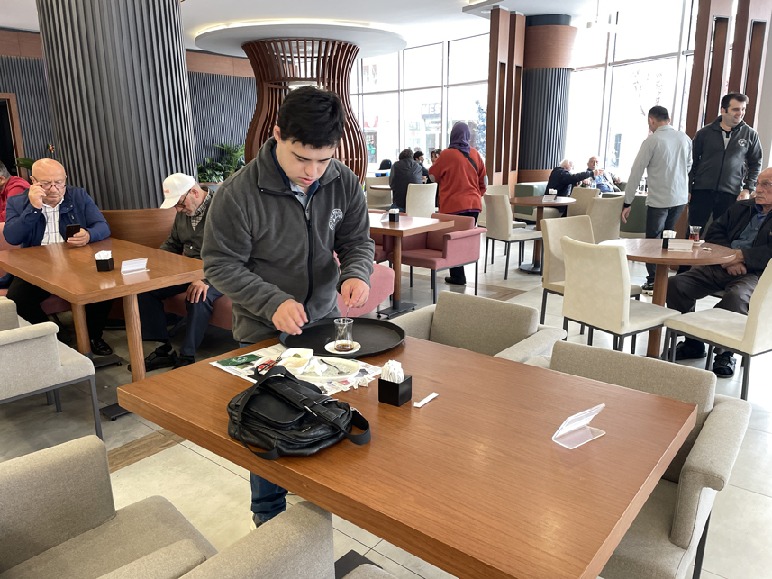 Yapılan bir yıllık çalışmanın sonucuna göre belirlenen bazı çocuklar, belediyenin sosyal tesislerinde haftanın belli günlerinde garson önlüklerini giyerek müşterilere çay servisi yapıyor.