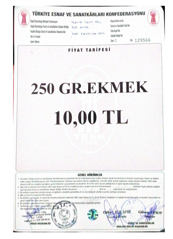 Şehirde 250 gramı 8,5 TL'den satılan ekmeğin fiyatı 1,5 TL zam yapılarak, 10 TL'ye çıkarıldı.