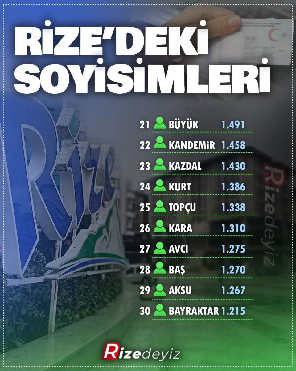 Rize'de de Türkiye genelinde olduğu gibi en çok görülen soyadı 'Yılmaz' oldu.