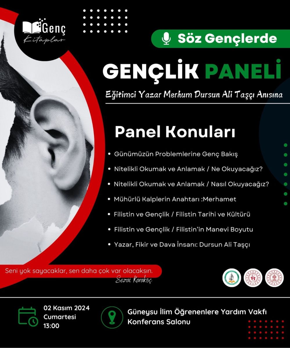 Saat 13:00'te, Hacı Hafız Yusuf Yılmaz Eğitim Külliyesi Konferans Salonu’nda gerçekleştirilecek "Söz Gençlerde" Gençlik Paneli, Türkiye’nin dört bir yanından Güneysu’ya gelen gençlerin sunumlarına ev sahipliği yapacak. Panelde, günümüzün önemli sorunları, okuma alışkanlığının önemi, Filistin meselesi ve merhamet gibi konular ele alınacak.