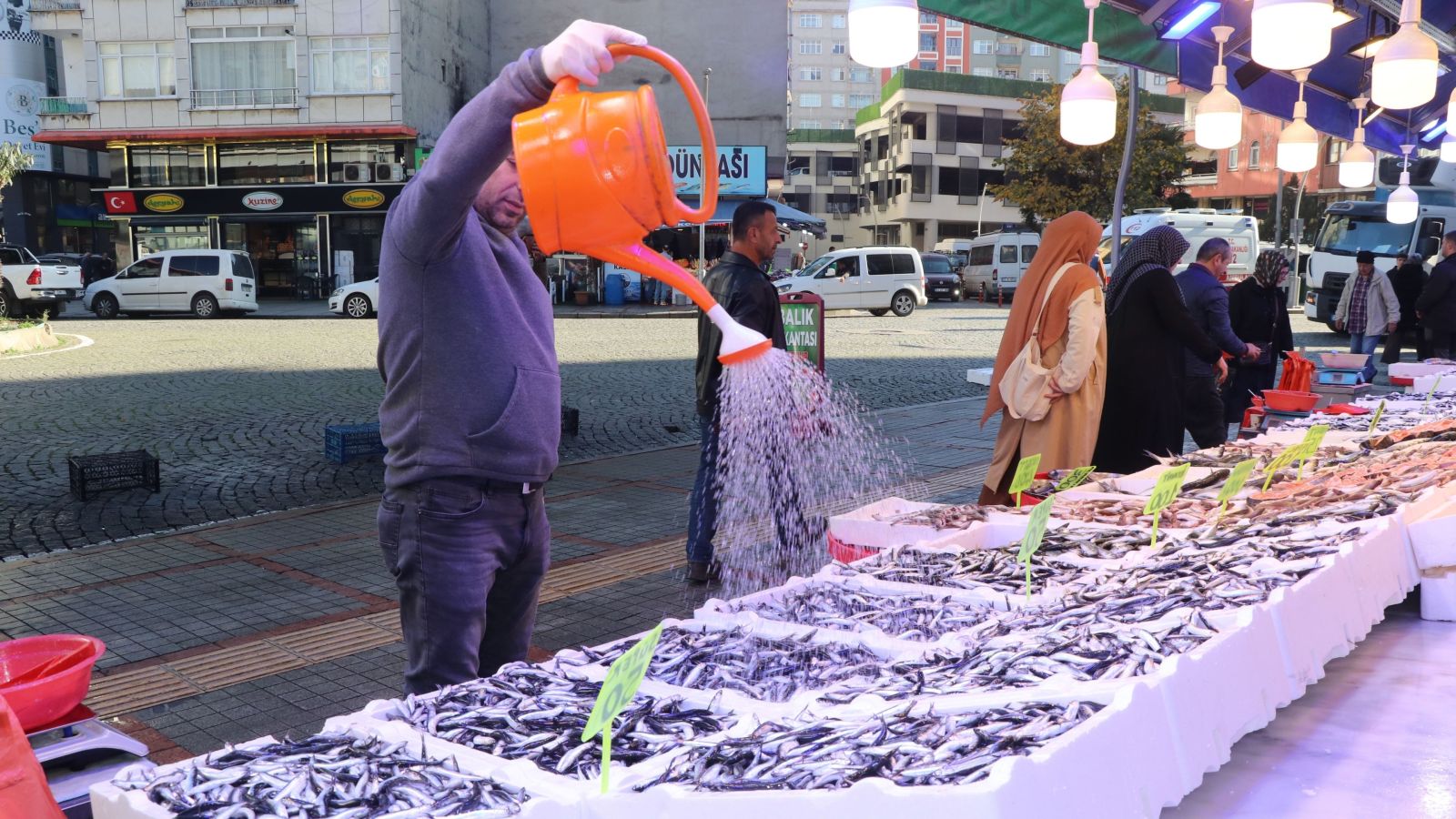 Rize'de balıkçı tezgahlarında hamsinin kilogramı 50 liradan satışa sunuluyor.