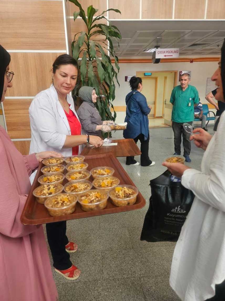 Rize Devlet Hastanesi'nde hasta ve yakınlarına aşure ikramında bulunuldu.