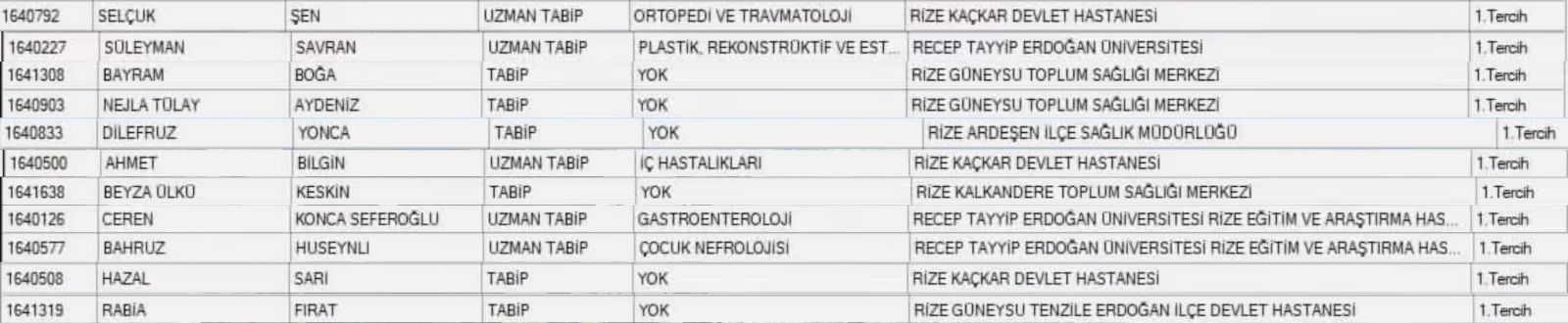 Uzman hekimlerin yanı sıra ilçe sağlık birimlerine 6 pratisyen hekim ataması yapıldı. Buna göre; Rabia Fırat Güneysu Tenzile Erdoğan İlçe Devlet Hastanesi’ne, Bayram Boğa ve Nejla Tülay Aydeniz Güneysu Toplum Sağlığı Merkezi’ne, Beyza Ülkü Keskin Kalkandere Toplum Sağlığı Merkezi’ne, Dilefruz Yonca Ardeşen İlçe Sağlık Müdürlüğü’ne, Hazal Sarı ise Kaçkar Devlet Hastanesi’ne pratisyen hekim olarak görevlendirildi.