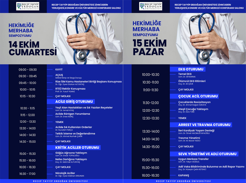 Recep Tayyip Erdoğan Üniversitesi (RTEÜ) ve Rize İl Sağlık Müdürlüğü'nün 14-15 Ekim'de RTEÜ Zihni Derin Yerleşkesi Kongre ve Kültür Merkezi'nde düzenleyeceği sempozyumda; başta mesleğine yeni başlayacak olan pratisyen hekimlere yönelik olmak üzere tüm hekimlerin, meslek yaşamlarında kendilerine büyük yarar sağlayacak bilgilerin sunulacağı belirtildi.