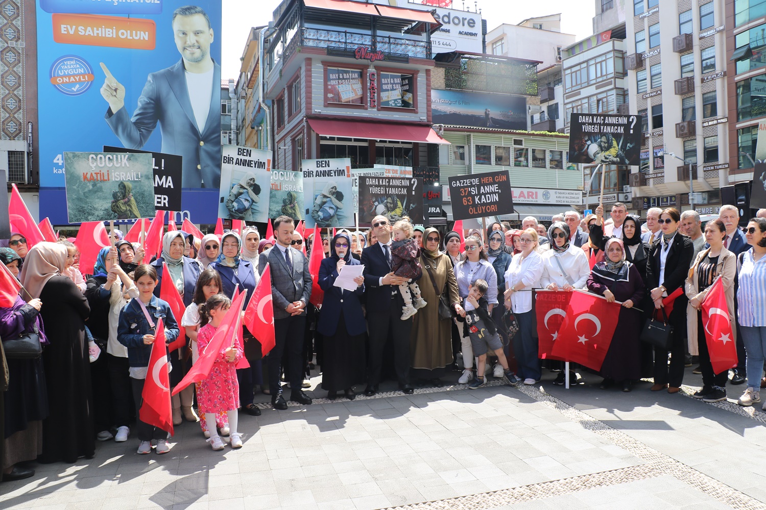 AK Parti'nin Rize il kadın kolları üyeleri, Anneler Günü öncesi İsrail'in Gazze'ye yönelik saldırılarında hayatını kaybeden anneler ve çocukları için basın açıklaması yaptı.