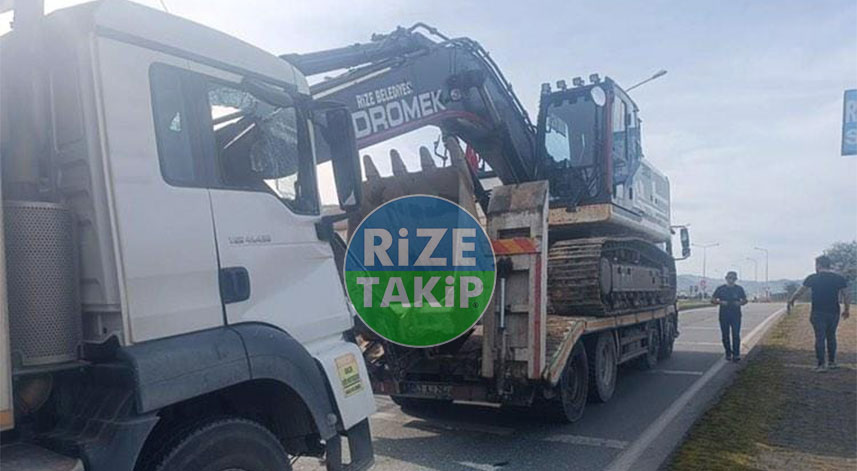 Rize'de kamyon, önünde ilerleyen bir başka kamyonun kasasındaki kepçeye çarptı. Ucuz atlatılan kazada bir kişi yaralandı.
