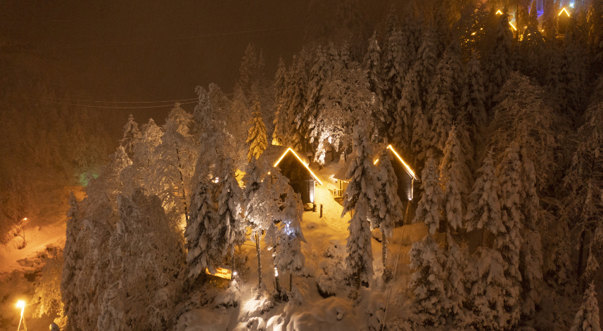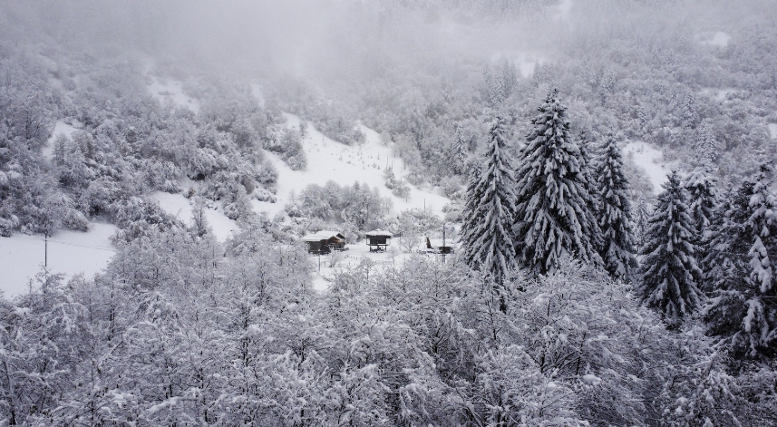 Rize'de, kar yağışının ardından beyaza bürünen yüksek kesimli yaylalar dronla görüntülendi.
