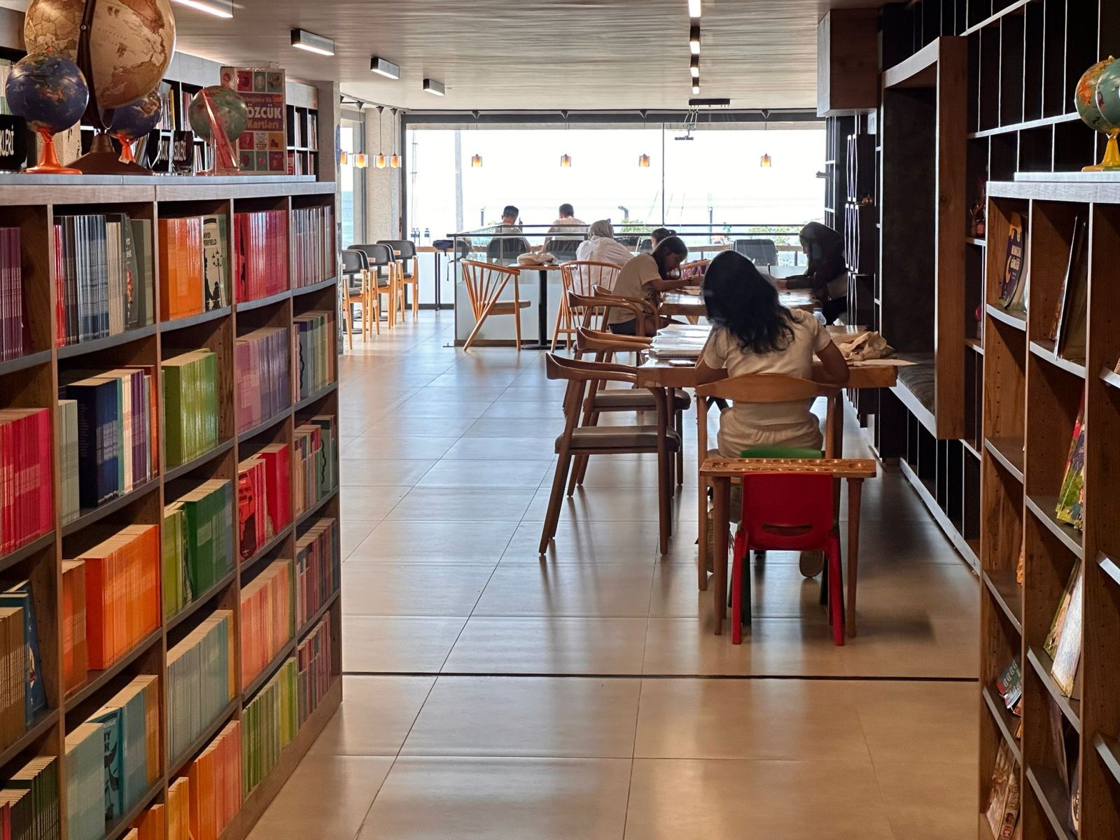İki katlı mağazanın giriş katında bulunan kafe, misafirlerin kitap okurken veya sohbet ederken dinlenebileceği rahat bir ortam sunuyor. Üst katta ise tamamen kitaplara ayrılmış bir bölüm yer alıyor.