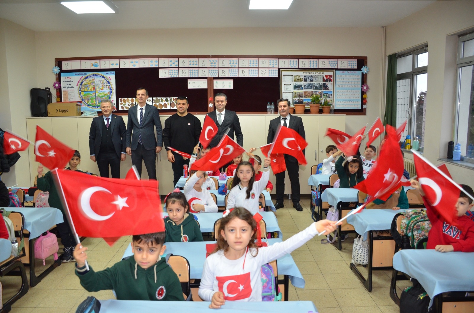 Rize'de, Millî Eğitim Bakanlığı'nın talimatları doğrultusunda ikinci dönemin ilk dersi 'bayrak sevgisi' temasıyla işlendi.