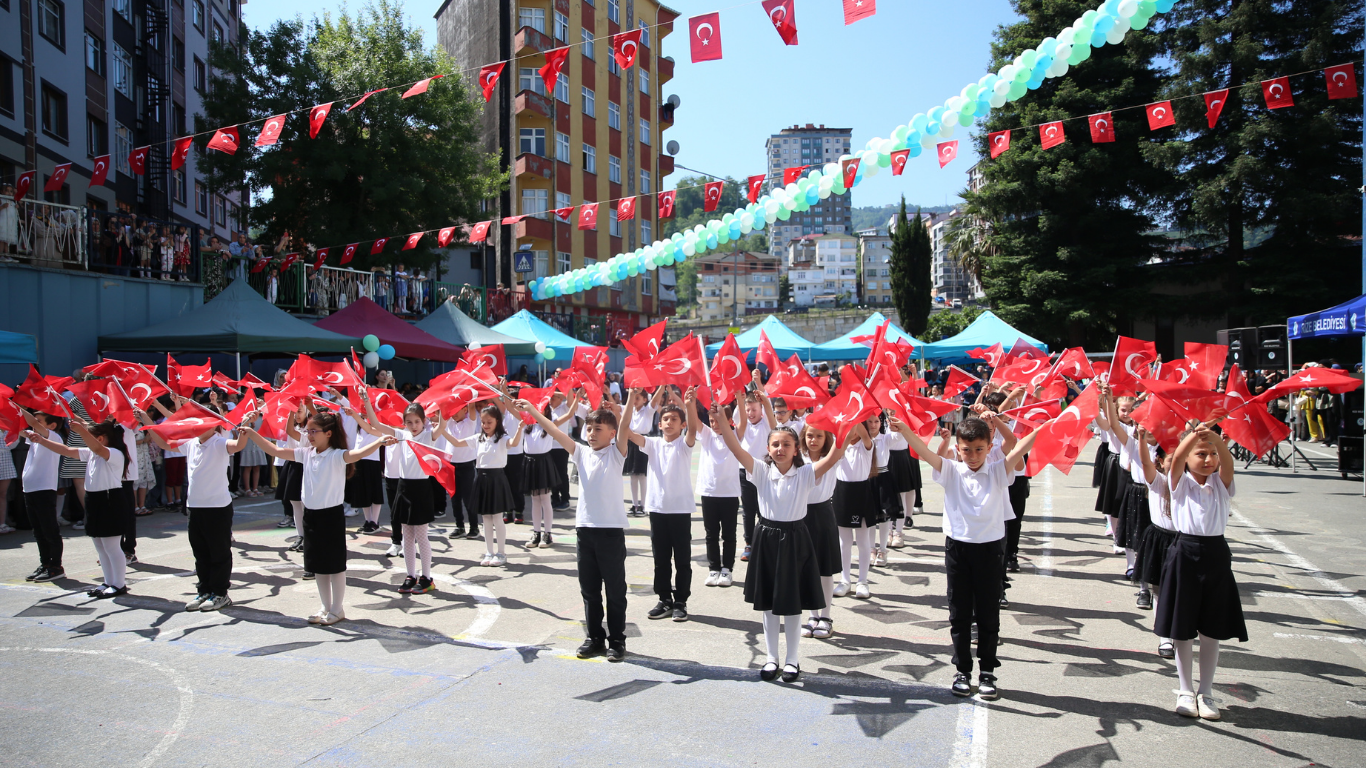 Rize merkezde bulunan Denizciler İlkokulu’nda düzenlenen karne töreninde öğrenciler, öğretmenleri ve ailelerinin katılımıyla renkli görüntüler oluştu. Minik öğrencilerin sahnelediği yıl sonu gösterileri, izleyenlerden büyük alkış aldı.