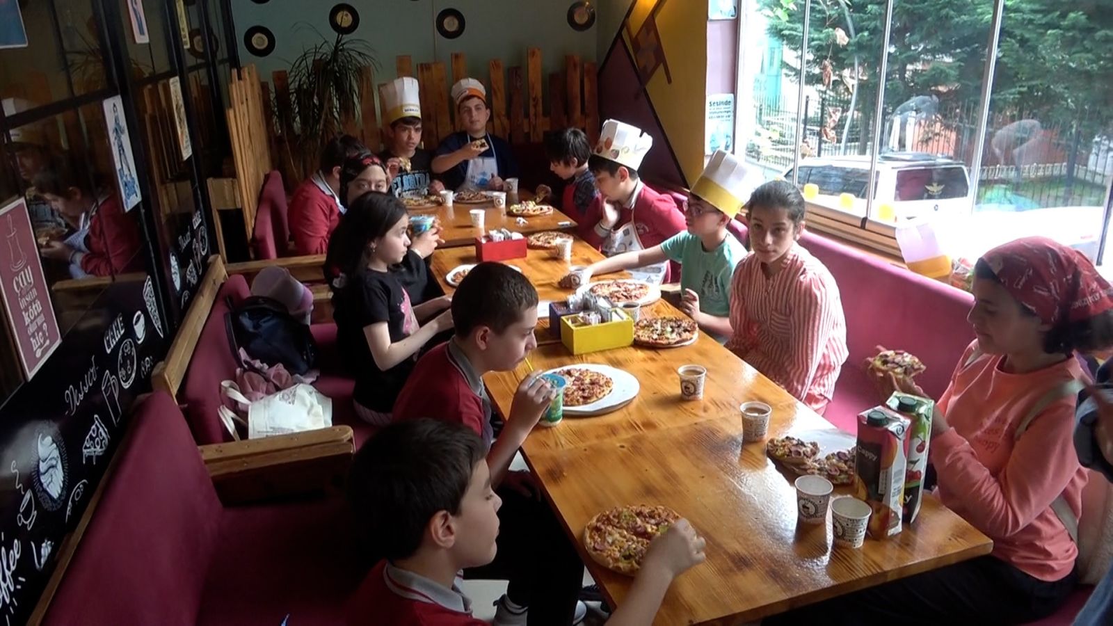 Rize’de bir pizzacı, Merkez Cumhuriyet Orta Okulu’nda öğrenim gören özel eğitim sınıfı öğrencilerini ağırladı. İşletmeye öğretmenleri ile gelen 12 kişilik öğrenci gurubu kendileri için özenle hazırlanan alanda pizzalarını yaptılar. İlk önce hamur açan özel çocuklar ardından pizzalarının malzemelerini ekledi. Ardından işletme çalışanlarının yardımıyla pişen pizzalar hep birlikte tüketildi. Pizza yapan 12 özel miniğin mutlulukları ise yüzlerinden okundu.