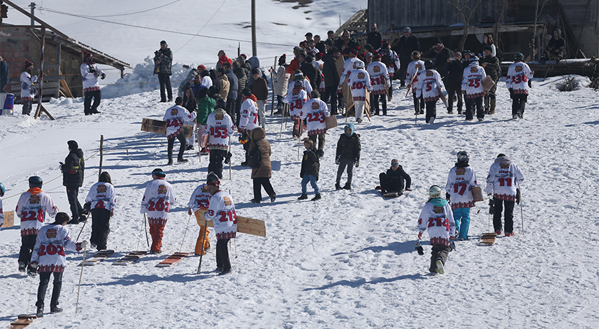 Petran Kültür Dayanışma ve Yardımlaşma Derneği ve İkizdere Kaymakamlığının katkılarıyla düzenlenen etkinlikte yarışmacılar, 175 metrelik karlı parkurda kıyasıya yarıştı. Bazı katılımcılar, dengelerini sağlayamayarak düştü.