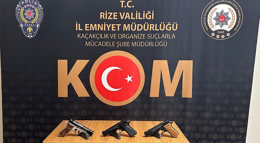 Rize İl Emniyet Müdürlüğü'nden yapılan açıklamada, Kaçakçılık ve Organize Suçlarla Mücadele Şube Müdürlüğü ekiplerince yapılan çalışmalar kapsamında tespit edilen şahısların üst ve araç aramalarında; 17 adet ruhsatsız tabanca ve 19 adet şarjör ele geçirildiği bildirildi.
