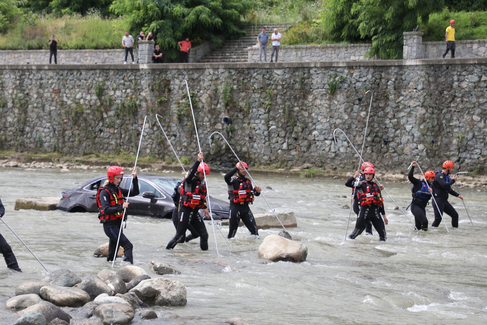 Kısa sürede olaya müdahale eden ekiplerin otomobil üzerindeki kişiyi kurtardığı, sel sularına kapılan kişilerin ise cesedini kıyıya çıkardığı tatbikat, gerçeği aratmadı.