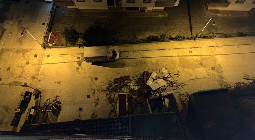 Korku içerisinde ne olduğunu anlamaya çalıştığını aktaran Hacaloğlu, "Evin ışıklarını yaktığımda odaların camlarının kırık olduğunu gördüm. Oturma odasından balkona baktığımda ise balkon demirlerinin ve camların kırıldığını, balkonda odun parçaları olduğunu fark ettim. Bina yıkılıyor sandım. Komşumun çağırması ile yan taraf geçtim. Binaya çatı düştüğünü sonradan öğrendim. Çok büyük korku atlattık." diye konuştu.