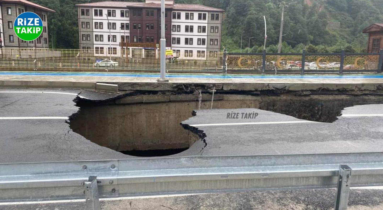 Rize'de sabah saatlerinde etkisini artıran şiddetli yağışın ardından yol çöktü.
