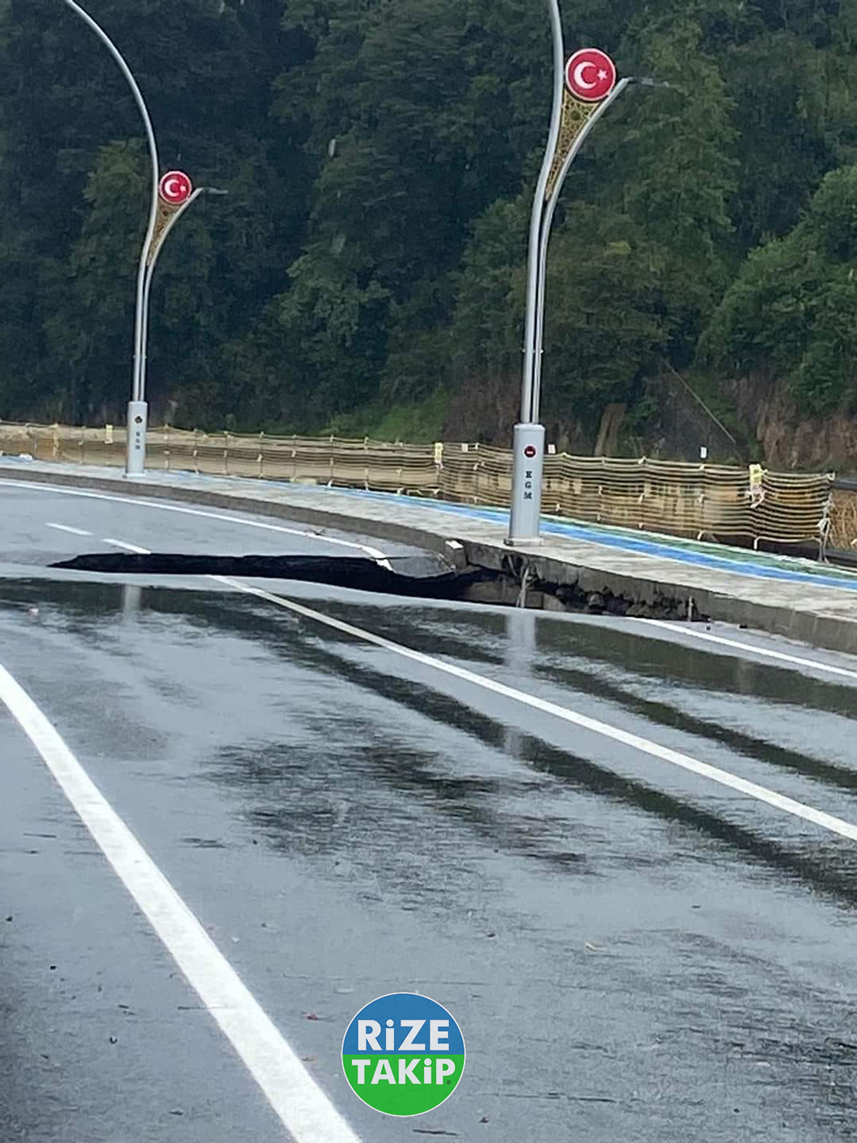 Rize-Güneysu yolunda yağmur sonrası göçük meydana geldi.