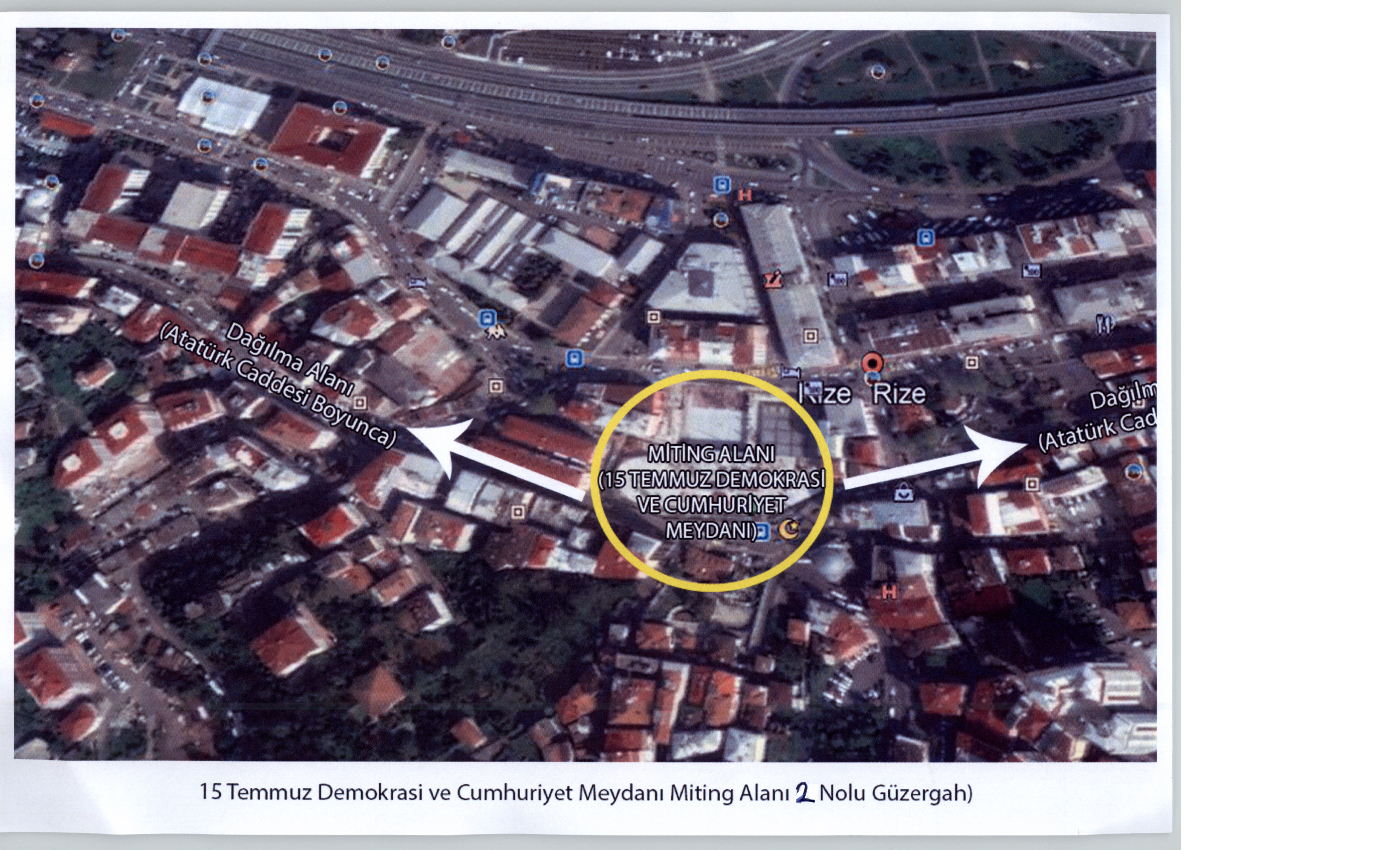 b) Toplantı Yeri (Miting Alanı): Rize Valiliği Önü Tören Alanı