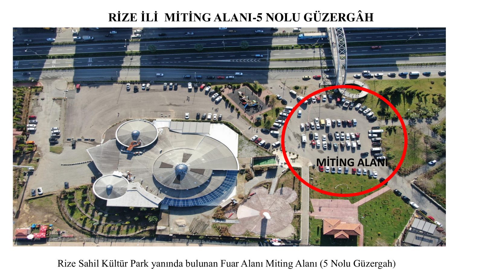 b) Toplantı Yeri (Miting Alanı): Rize Sahil Kültür Parkın yanında bulunan Fuar Alanı