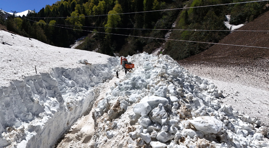 Rize'nin Çamlıhemşin ilçesine bağlı Avusor ve Kavrun yaylaları yollarında iş makineleriyle karla mücadele çalışması devam ediyor.