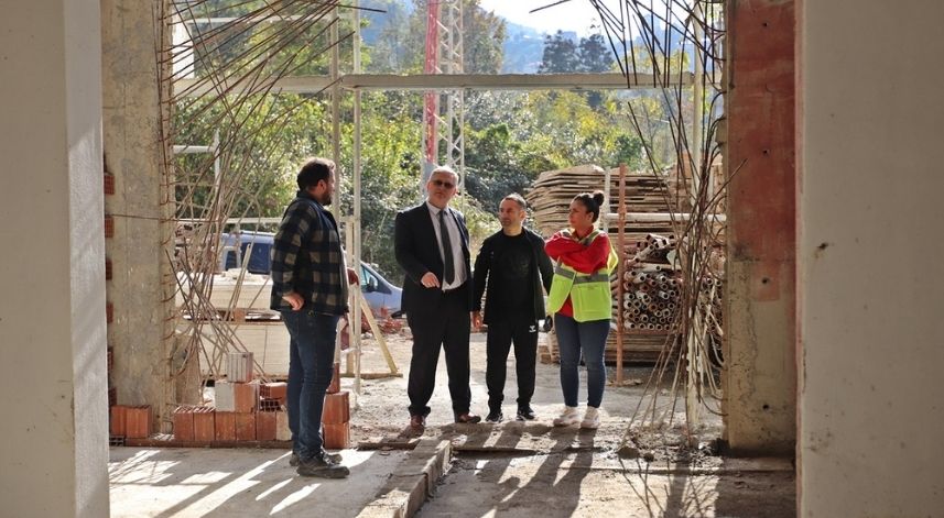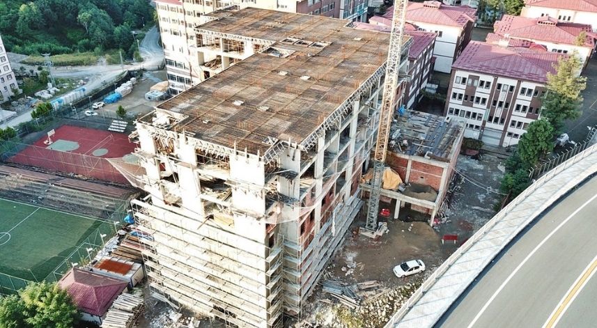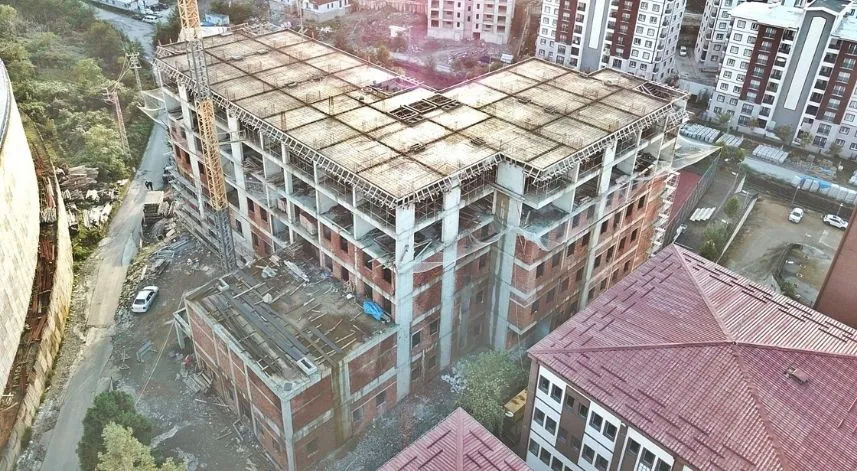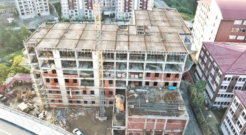 Rize'de üniversite öğrencileri için inşa edilen yeni yurtta çalışmalar devam ediyor.
