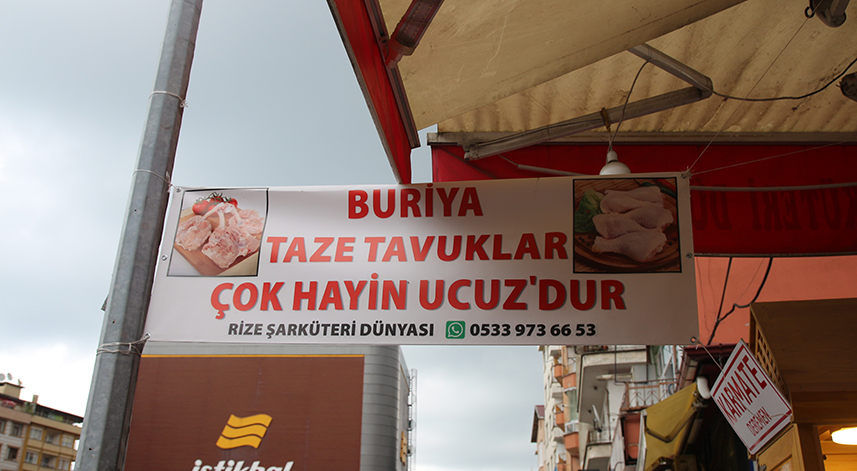 Yöresel şive ile yazılan ürünler müşterinin daha çok dikkatini çektiğini belirten Recep Yazar, “Ben Rize’nin yöresel şivesinin kaybolmasını istemiyorum. Yöresel şiveyi kullanmak istiyoruz. Ürünleri satarken de yöresel şiveyle yazıyorum. Bu da müşterinin daha çok dikkatini çekiyor. Hoşlarına gidiyor. Almayacağı varsa alası geliyor. Hatıra fotoğrafı çektiriyor. Buraya ‘Taze tavuklar hayin ucuzdur’ yazdım. Onu çok beğendiler. Bir de ‘Sevdiklerinizi şımartın onlara mısır unu alın’ gibilerinden yazılar var. Malum altın fiyatları fazla ama mısır unu altın sarısı gibi olduğu için mısır ununun satışları patladı. Rize’ye dışarıdan gelenler ‘hayin’ ne demek diye soruyorlar. Biraz gaddar anlamına geliyor ama çok fazla anlamına da geliyor. Müşteriler ‘biz hayin ucuz’ olan tavuktan ver diyor. Satışlarımız şuan çok iyi gidiyor” diye konuştu.