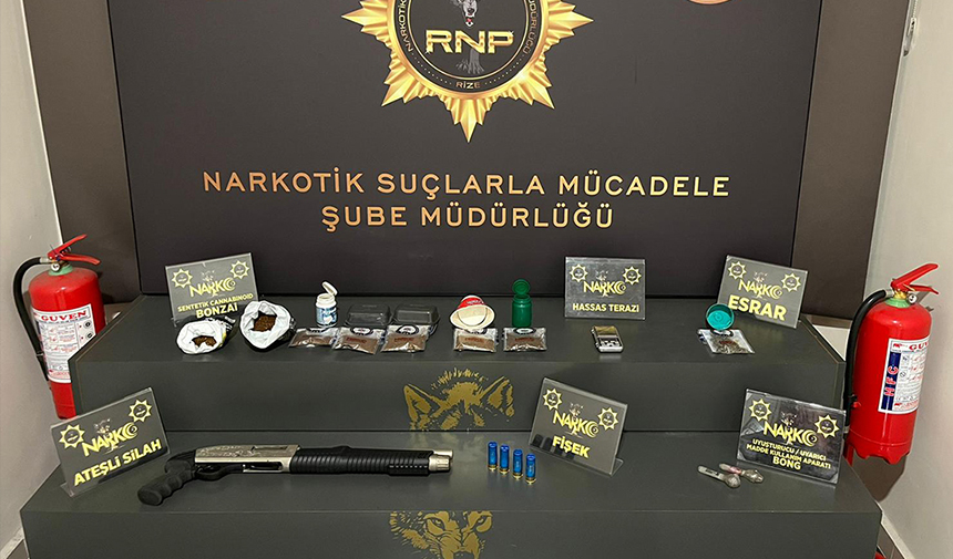 Açıklamada, söz konusu aramalarda; 396,46 gram sentetik cannobinoid (bonzai) maddesi, 21,09 gram kubar esrar maddesi, 2,74 gram metamfetamin maddesi, 35 adet kenevir bitkisi, 3 adet sentetik ecza maddesi, 3 adet uyuşturucu kullanım aparatı, 1 adet yivsiz av tüfeği ve tüfeğe ait 4 adet fişek ile 1 adet hassas terazinin ele geçirildiği bildirildi.