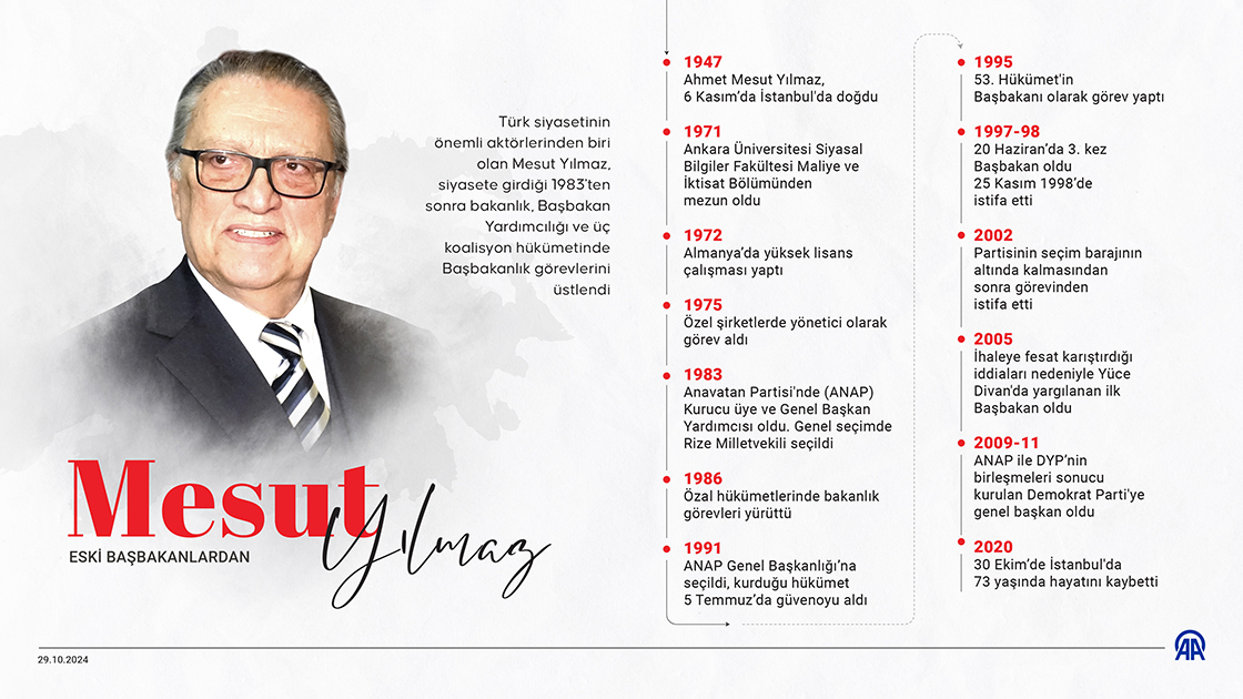 Türk siyaset tarihinde bakanlık, başbakan yardımcılığı ve başbakanlık görevlerini üstlenen Mesut Yılmaz'ın vefatının üzerinden 4 yıl geçti.