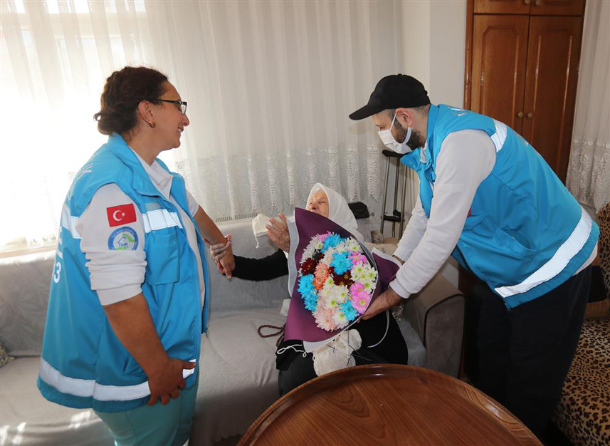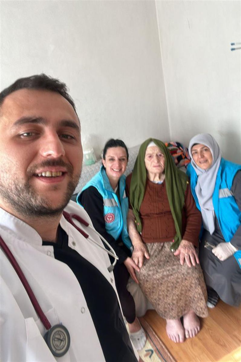 Rize İl Sağlık Müdürlüğü'nün evde sağlık ekipleri, şehirde yaşayan asırlık çınarları Cumhuriyet'in 100. yılı etkinlikleri kapsamında ziyaret ediyor.