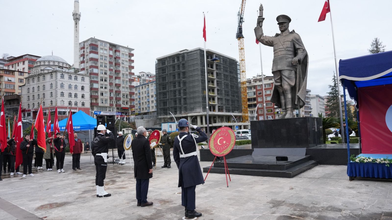 Valilik önünde düzenlenen törene; Vali İhsan Selim Baydaş, Belediye Başkan Vekili Abdulkadir Öksüz, İl Emniyet Müdürü Murat Türesin, Garnizon Komutan Vekili Albay Hüseyin Ekşioğlu, protokol üyeleri öğrenciler ve vatandaşlar katıldı.