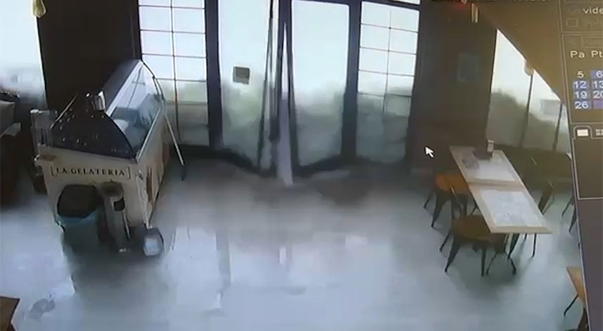 Fırtına ve dev dalgalar Doğu Karadeniz Bölgesi'nde hayatı olumsuz yönde etkilemeyi sürdürüyor. Şiddetli fırtınanın getirdiği dev dalgalar Rize'nin Fındıklı ilçesi sahilinde de etkili olurken, belediyeye ait sosyal tesislerin içerisine giren dalgalar, masa ve sandalyeleri sürüklerken, geride cam çerçeve bırakmayarak iş yerine zarar verdi. Dalganın dükkana giriş anı ise güvenlik kameralarına yansıdı. O anlar adeta bir tsunami felaketini andırdı.