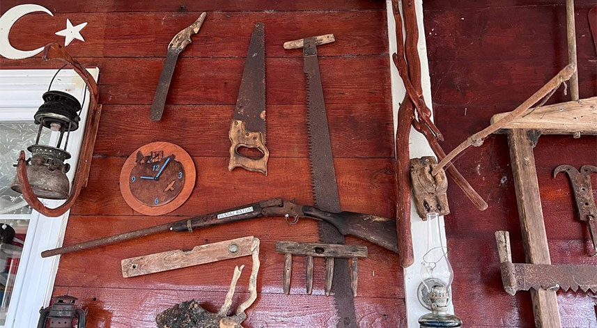 Geçmişte kullanılan araç ve gereçleri evinin kapısında sergileyen Kemal Yakıcı “Eskiden dedelerimizin, ninelerimizin ne kullandıklarını gençler görsün diye böyle bir şey yaptım. Dedelerimiz odunu bunlarla biçerdi, eski evleri yapmak için bu malzemeleri kullanırlardı. Hepsi eski. Eskilerimizin kullandığı her şeyi kapımda sergiliyorum. Herkes de elindeki eski ürünleri bana verebilirler. Bende isimlerini yazarak, onlara ait olduğunu belirtecek şekilde sergilerim” dedi.