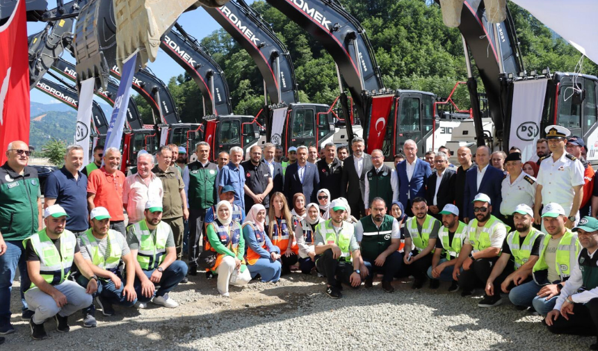 Rize'de sel ve heyelan risklerini azaltmada kullanılacak 8 adet iş makinesi hizmete alındı.