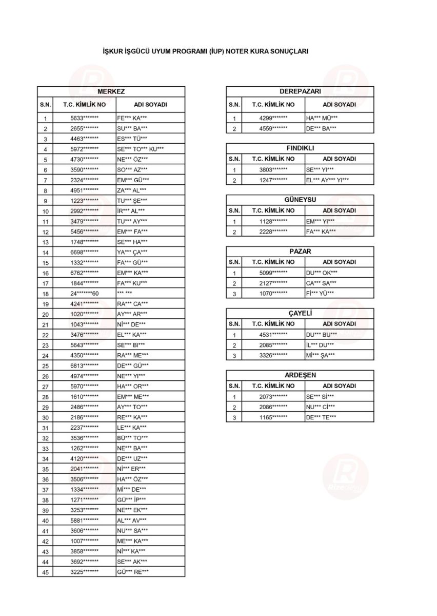 Rize'de, Türkiye İş Kurumu'nun (İŞKUR) 'İşgücü Uyum Programı' (İUP) programı kapsamında Recep Tayyip Erdoğan Üniversitesi'nde (RTEÜ) istihdam edilecek 60 kişi, noter kurasıyla belirlendi.