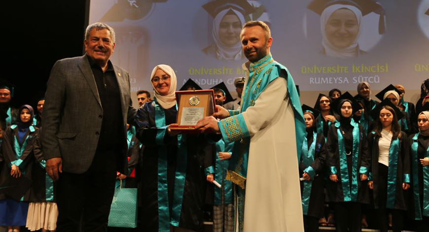 Fakülte, yüksekokul ve meslek yüksekokulu bazında dereceye giren öğrencilere protokol üyeleri tarafından RTEÜ Geliştirme Vakfının katkılarıyla alınan ödüllerin ve mezuniyet belgelerinin takdim edildiği törende gurur ve heyecan bir arada yaşandı.