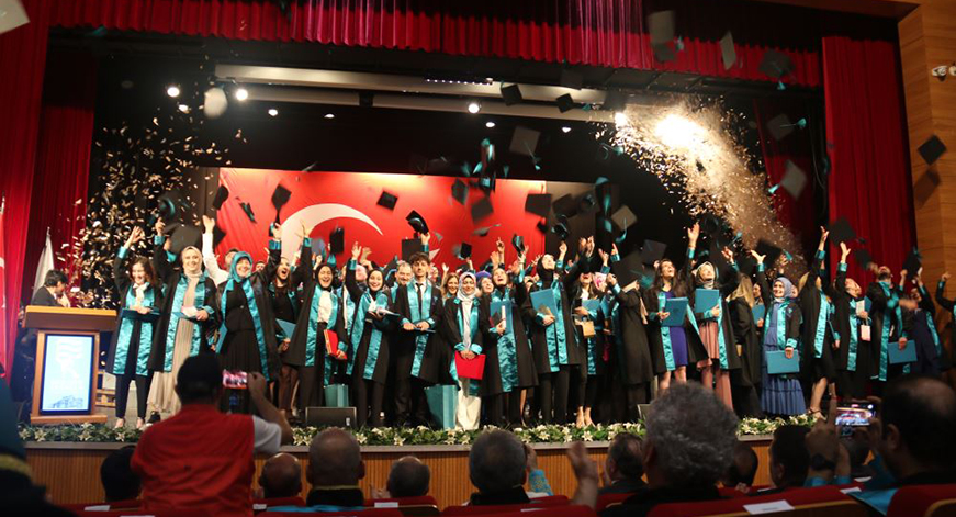 Öğrenciler mezuniyetlerini keplerini havaya fırlatarak kutladı.