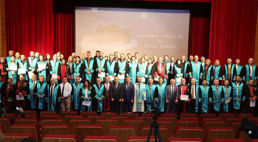 Konuşmaların ardından, profesör, doçent ve doktor öğretim üyesi kadrosuna atanan öğretim üyelerine cübbeleri giydirilerek belge takdimi gerçekleştirildi.