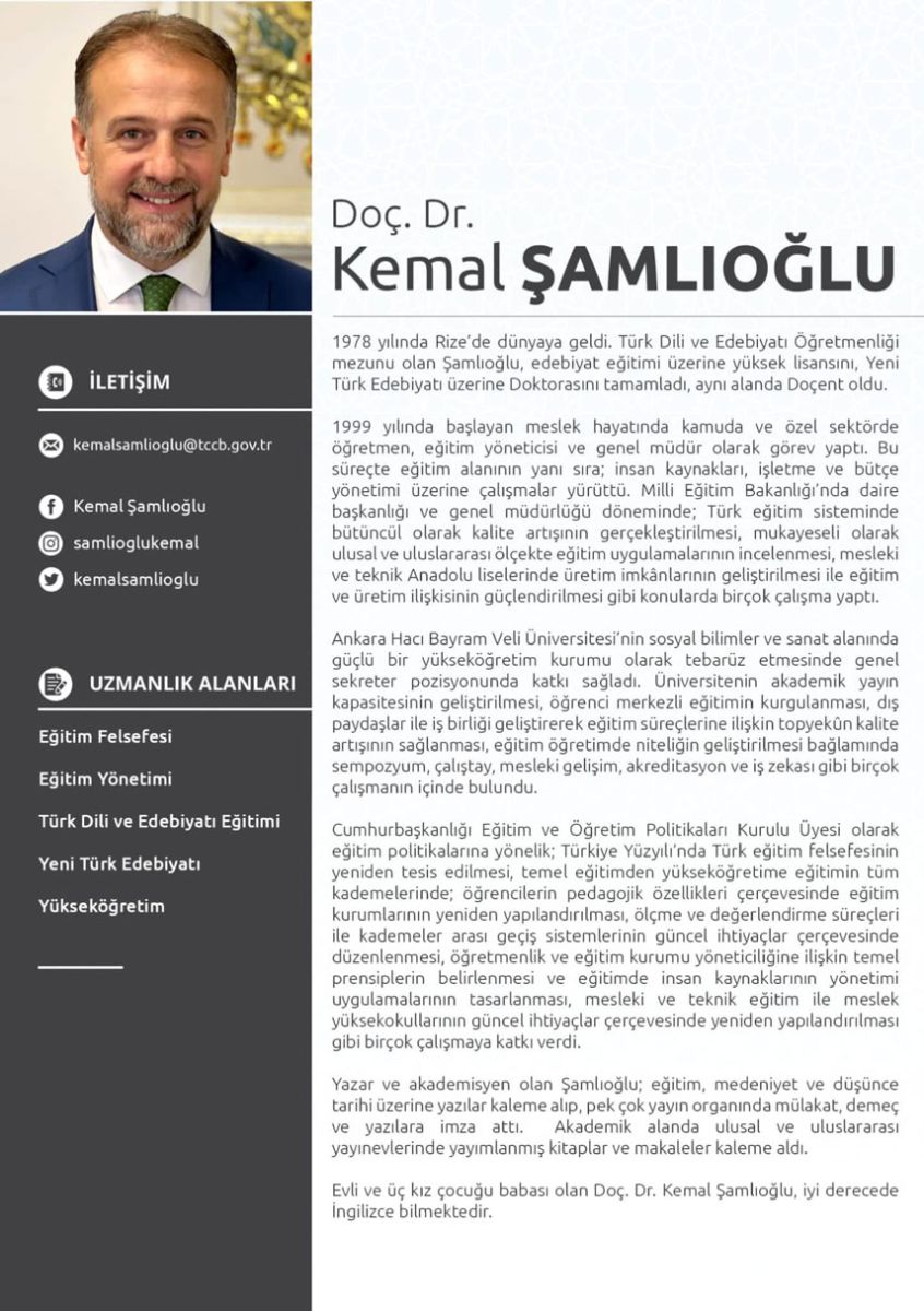 Cumhurbaşkanlığı kararnamesiyle Milli Eğitim Bakan Yardımcılığı görevine Cumhurbaşkanlığı Eğitim ve Öğretim Politikaları Kurulu Üyesi Rize Ardeşenli Doç. Dr. Kemal Şamlıoğlu getirildi.