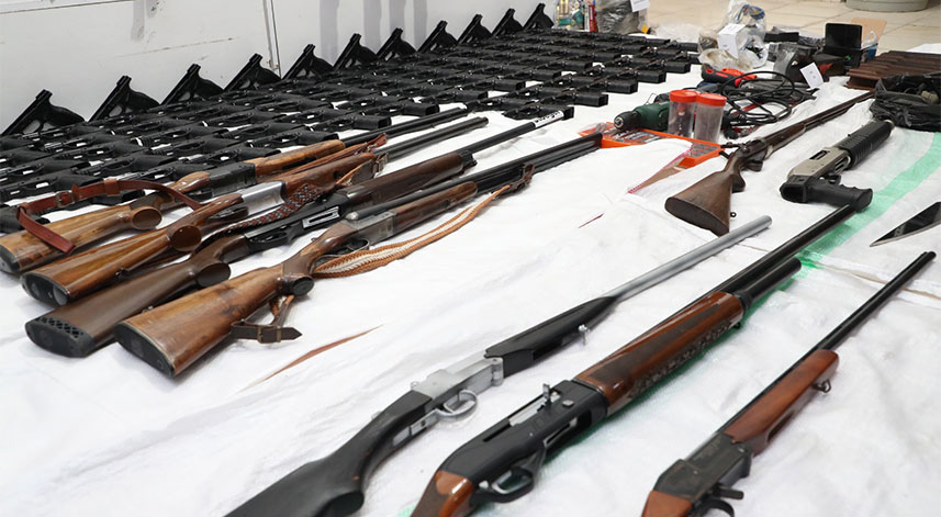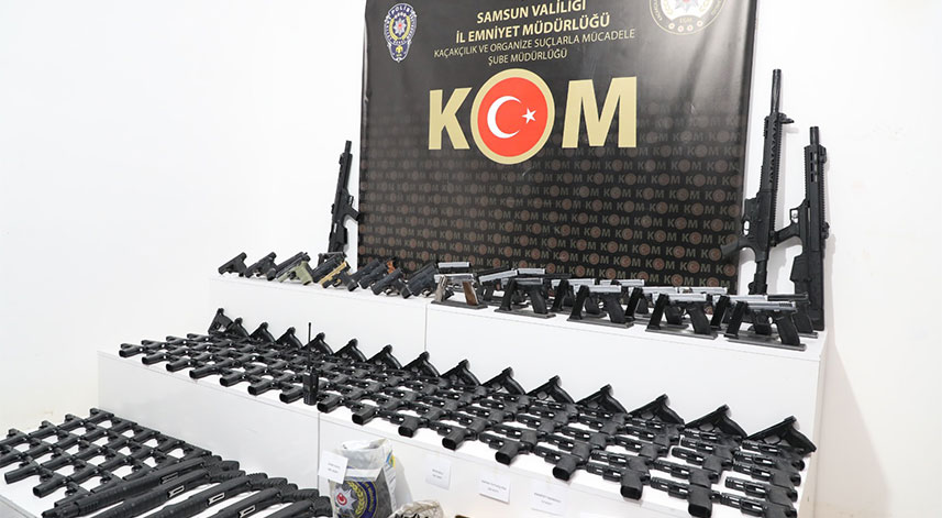 Operasyonda 19 ruhsatsız tabanca, 21 pompalı tüfek, 221 tabanca gövdesi, 300 fişek, 2 kılıç, 2 mengene, demir testere, telsiz, 23 sentetik ecza hapı ve 0,68 gram metamfetamin ele geçirildi.