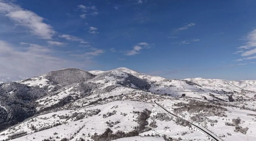 Salı günü etkili olan kar yağışı sonrası karla kaplanan Kızlan Yaylası ve Dürtmen Tepesi beyaz örtüyle kaplandı.