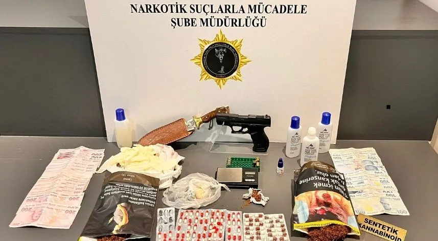 İlkadım ve Atakum ilçelerinde belirlenen adreslere düzenlenen operasyonda, 1654 sentetik ecza hapı, 100 uyuşturucu hap, 275,50 gram sentetik uyuşturucu, 29 gram sentetik uyuşturucu ham maddesi, 390 mililitre aseton, 3 hassas terazi, 6 eldiven, kurusıkı tabanca, 5 tabanca fişeği, 2 uyuşturucu kullanma aparatı, 2 bin lira sahte para ile uyuşturucu madde satışından elde edildiği değerlendirilen para ele geçirildi.