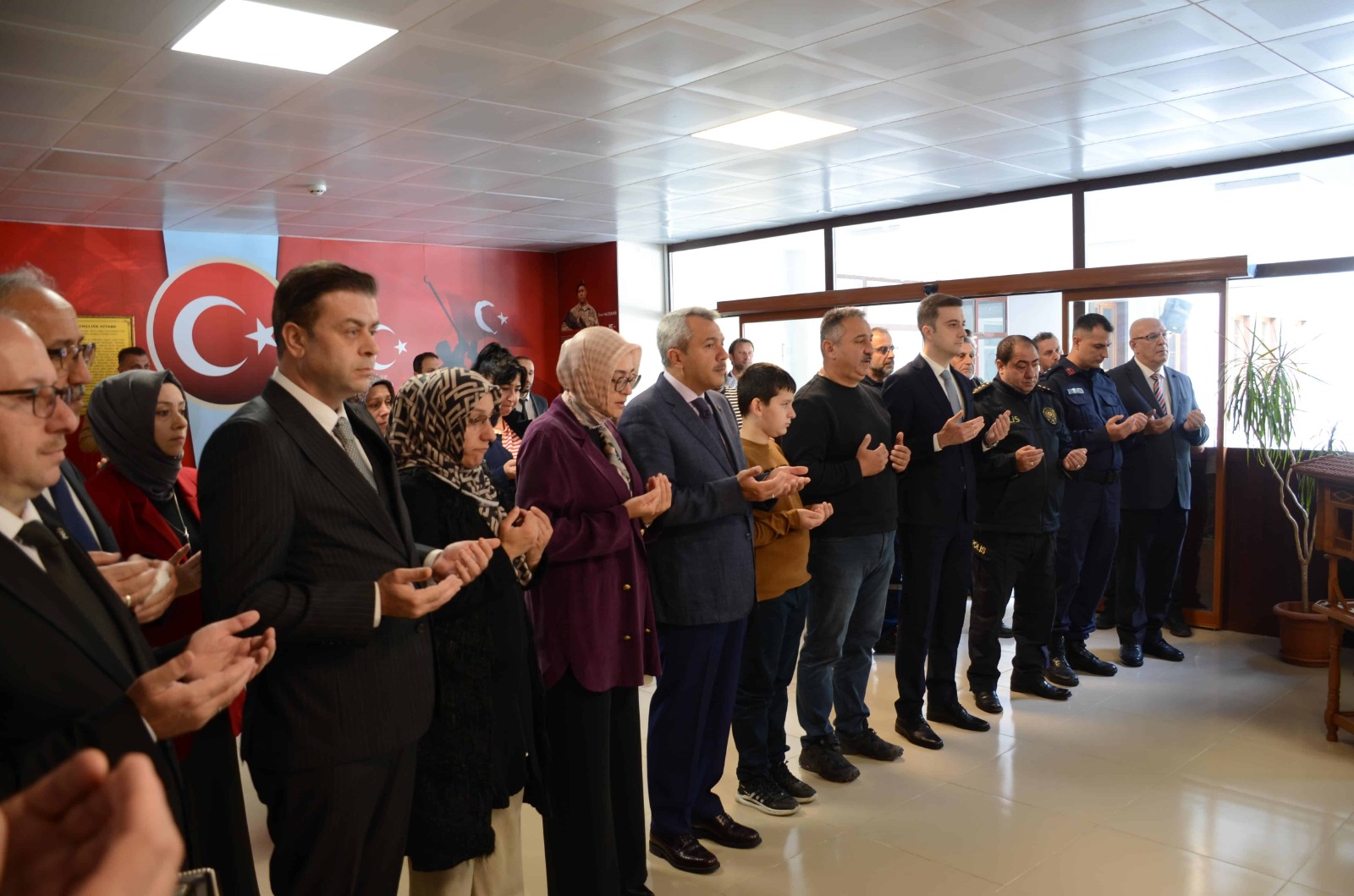 İlçe Müftüsü Nizamettin Keskin'in duasının ardından okulun yeni ismi, yapılan kurdele kesimiyle resmiyet kazandı.