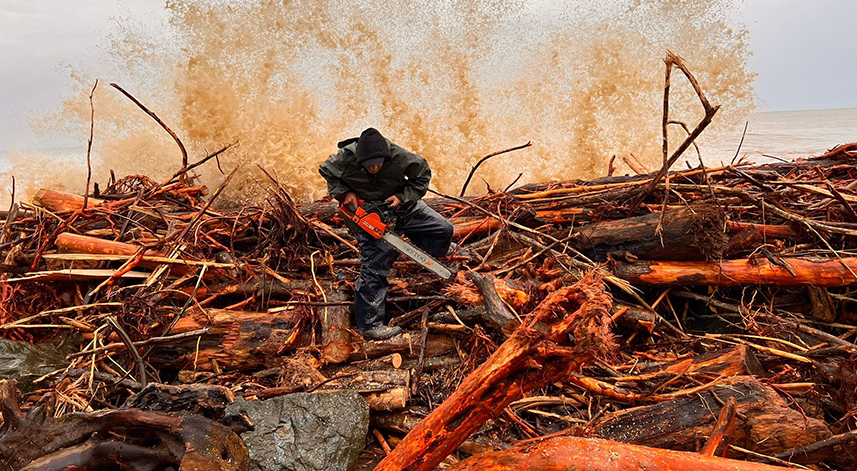 Rize’de dün yaşanan şiddetli yağışlar sonrası oluşan seller ile birlikte derelerin getirdiği odun ve kütük parçaları denize ulaşırken, yöredeki vatandaşlar kışlık yakacaklarını temin etmek için Karadeniz Sahili'ni doldurdu.