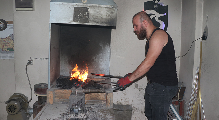 Sürmene ilçesindeki bıçak fabrikasında çalışan kardeşler, akşamları iş çıkışı geldikleri atölyelerindeki ocakta yüksek derecede ısıttıkları demiri kol gücü ve alın teriyle saatlerce örste dövüyor.