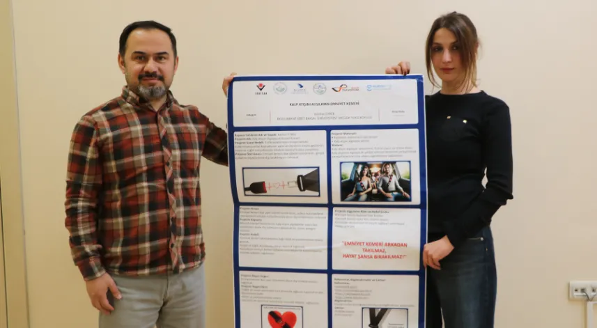Bolu Abant İzzet Baysal Üniversitesi Bolu Meslek Yüksekokulu 2'nci sınıf öğrencisi Aslıhan Eğrek (26), direksiyon başında kalp krizi geçiren sürücülerin kaza yapmalarının önüne geçilmesi için 'Kalp Atışını Algılayan Akıllı Emniyet Kemeri' projesini hazırladı.