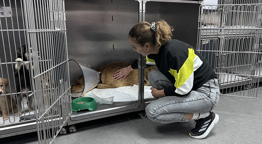 Veteriner hekim Ömer Faruk Alkan da köpeğin kaza şikayetiyle kendilerine geldiğini, genel durumunda sıkıntı ve topallığı olduğunu kaydetti.