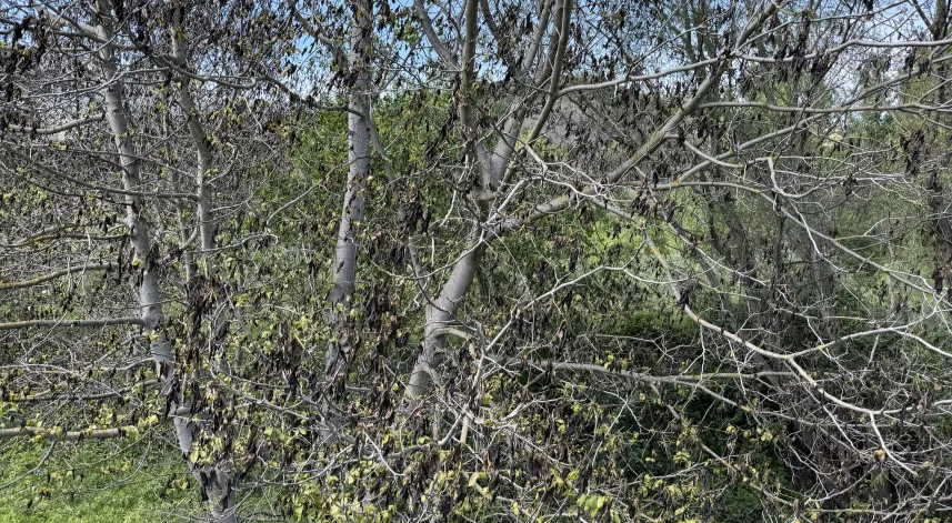 Bolu'nun Göynük, Mudurnu ve Seben ilçelerinde 5-6 Mayıs'ta yaşanan zirai dondan etkilenen tarım alanlarında hasar tespit çalışmaları devam ediyor.