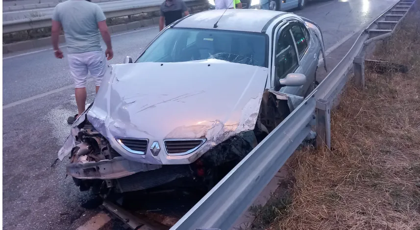 Çarpmanın etkisiyle savrulan otomobil, bariyere çarparak durabildi.