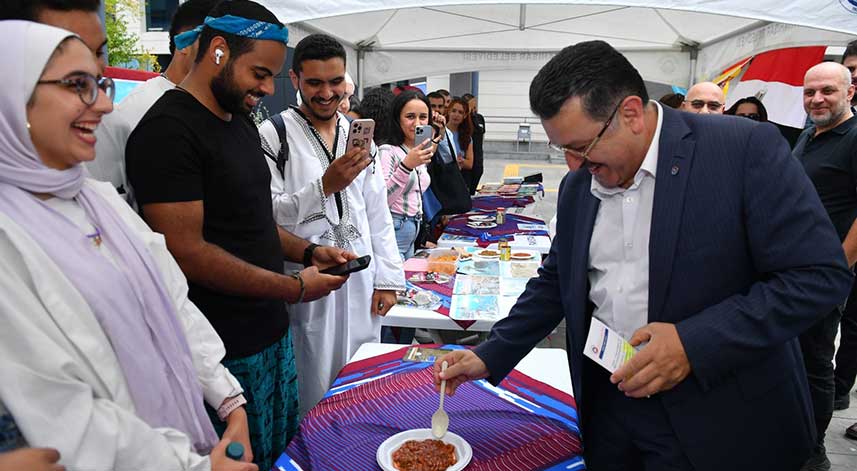 Kazakistan, Mısır, Tunus, Portekiz, Pakistan ve Azerbaycanlı öğrencilerin ülkelerini tanıtıcı ürünlerin ve bayrakların yer aldığı stantları gezen Ortahisar Belediye Başkanı Ahmet Metin Genç, sergilenen ürünlerle ilgili bilgi alarak öğrencilerle bir süre sohbet etti.