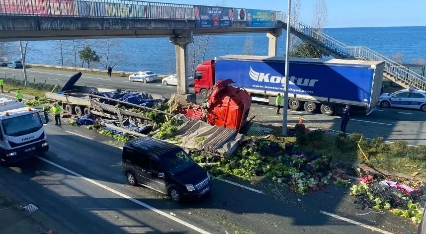 Öte yandan, kaza sonrası tırın dorsesinde bulunun sebzelerin karayoluna savrulması nedeniyle uzun kuyruklar oluştu. Polis ekipleri ve çevredeki vatandaşların yardımıyla yola savrulan sebzeler temizlenerek karayolu kontrollü olarak trafiğe açıldı.